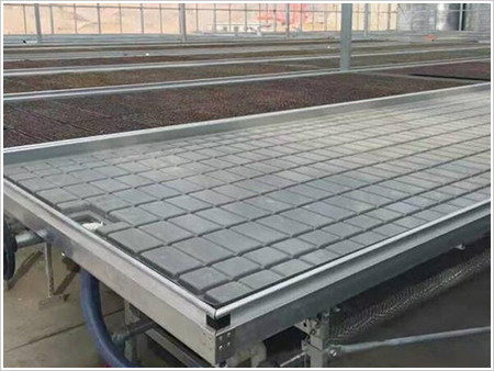 為了保證良好的灌溉效果,潮汐灌溉系統(tǒng)對栽培床的工作面要求較為嚴(yán)格,必須保證水分能自由地在灌溉區(qū)流動。與此相似,當(dāng)灌溉完成時栽培容器內(nèi)多余的水分必須回收到栽培床上,也就是從栽培容器回收到回液箱中。栽培床表面必須非常水平才能確保水分在灌溉域的良好澆灌--使所有栽培容器中的基質(zhì)在同一時間加濕,多余的水分在同一時刻回收。